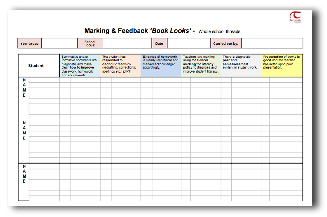 The key here is to stress the importance of engaging all threads within the school structure, both whole school and subject specific. For example, how often do teaching assistants, form tutors, learning support coordinators and governors get the opportunity to undertake book looks? I know that previously in our school two common approaches were; SLT whole school looks and faculty specific ones, each taking place on a specified day/date. Again, this leads me to ask; do/are all book looks needed at the same time by the same people? and where’s the autonomy and flexibility? hence the school policy driven, box ticking task. I’d like to thank Ross McGill for his blog on ‘Taking A Look At Books‘ enabling me to adapt the criteria used within his diagnostic approach.