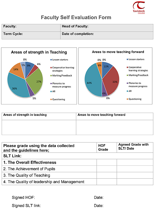 leaders to lead needs to be common place in every school, one tool that enables this to happen through reflection and inform leadership decisions is the faculty self-evaluation (FSEF) In essence, it does exactly what it says on the tin, feeding into the whole school SEF and development plan. The front page of the FSEF outlines the areas of strength and areas to move teaching forward from ungraded lesson observations, as a result providing statistical information supportive by a narrative to justify the drive and direction of CPD. Collaboration is crucial here, it may be for example, that a faculty which has a particular strength consistently in a certain aspect of teaching and learning runs bespoke training and provides on-going support for other faculties who do not. This week all staff