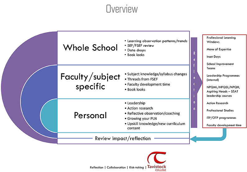 It’s crucial that any professional learning/CPD model supports the ongoing professional development needs of all staff, whilst representing value for money, this is simply common sense. However, the bigger question is how can this model truly support the ever-changing professional learning needs day by day, week by week and term by term to further sustained improvement? A three-point approach, encompassing whole school, faculty/subject specific and individual needs, which are not mutually exclusive can support all strands of a schools development. More crucially, it is important this is underpinned by an ethos of reflection. Understanding and identifying development needs are fundamental to maintaining a sustained model of improvement, one way to achieve this is through a teaching and learning model of triangulation.