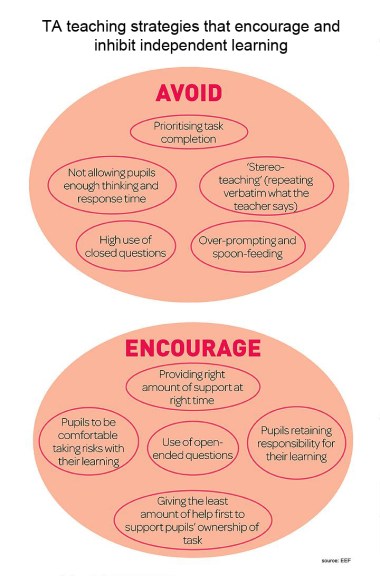 - Encourage teaching assistants to be active in lessons, this is essential in raising their profile in the classroom.