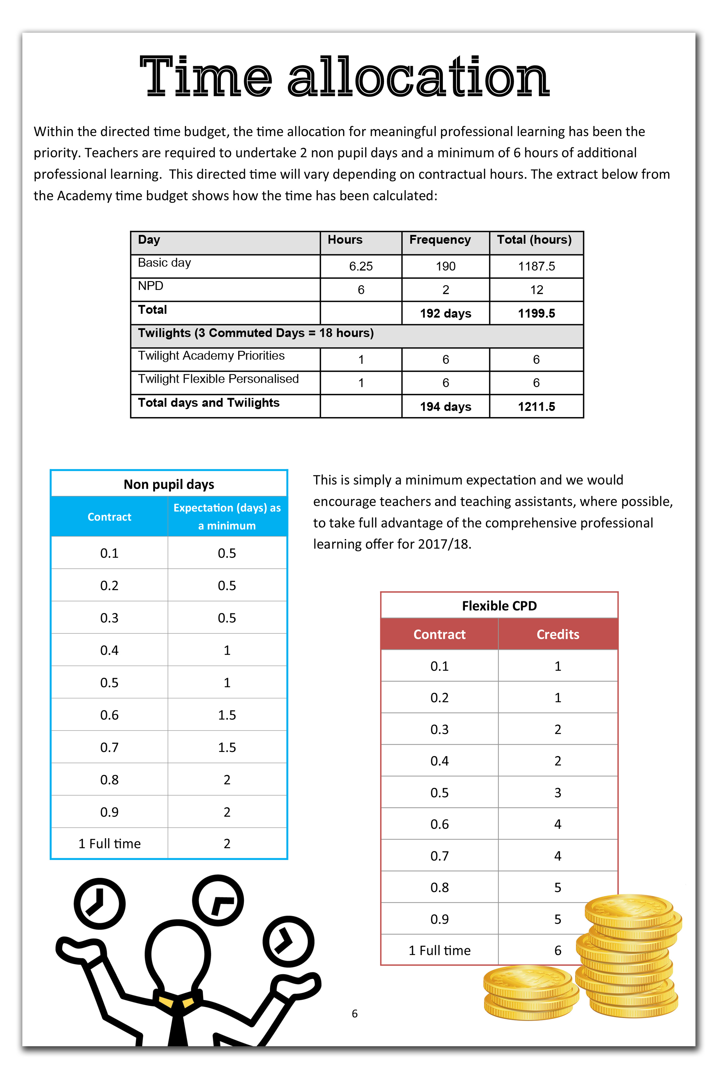 Pay careful consideration to how you can create a flexible offer that will enable all teachers to develop their practice. For example, are you guiding teachers, perhaps to where an inset session might be appropriate? Are you targeting specific teachers to help them develop particular aspects of pedagogy, identified through your quality assurance triangulation of teaching and learning? More importantly, do you offer breadth and choice for teachers to be able to select where and when they undertake their professional development? I believe all schools must make professional development a priority within their time and financial budgets. My plea to school leaders; please do not use your time budget as mechanism to simply flog endless meeting time or as a vehicle to deliver top down initiatives/fads that ultimately serve as a distraction from the main thing. I can guarantee that this approach will inevitably become low impact and breed a culture of compliance. Every school needs time set aside for whole school development and I’m not advocating ever removing it, however, there has to be a balance in how this time allocation is devolved. Here’s an extract from our professional learning booklet, which can be downloaded here; Professional Learning booklet 2017